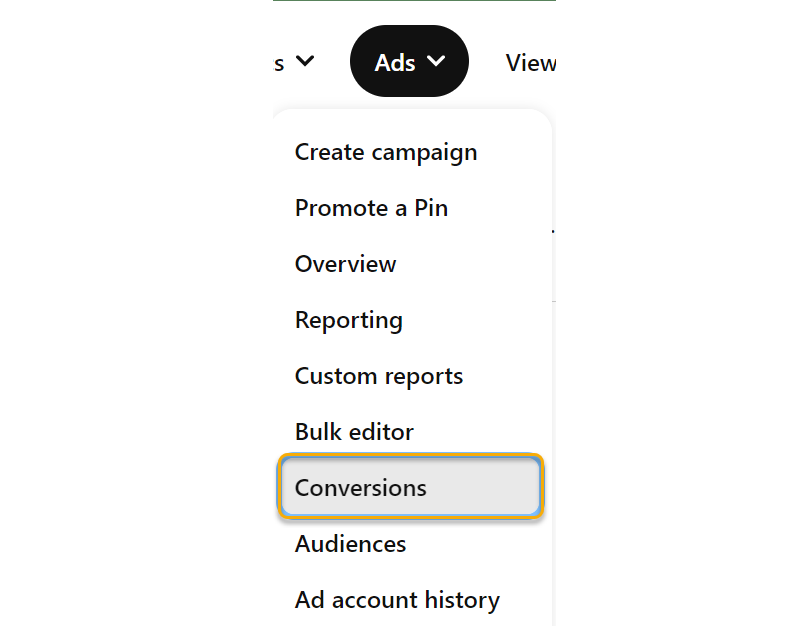 If you do not see that prompt, you can find your pixel code by going to the Ads menu and clicking on “Conversions”.