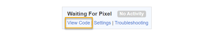 If you’ve already clicked this button previously, it will say “Waiting for pixel”. If you see that, click on “View Code” to get your pixel and install it on your pages.