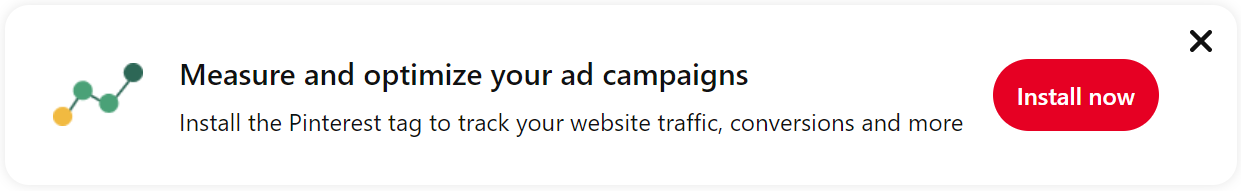 1. In your Pinterest Ads dashboard, if you have not installed your pixel yet you will likely see a prompt on the page to do so.