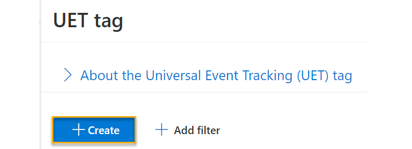 2. If you don’t already have a UET Tag listed here, click the “Create” button to create a UET Tag.
