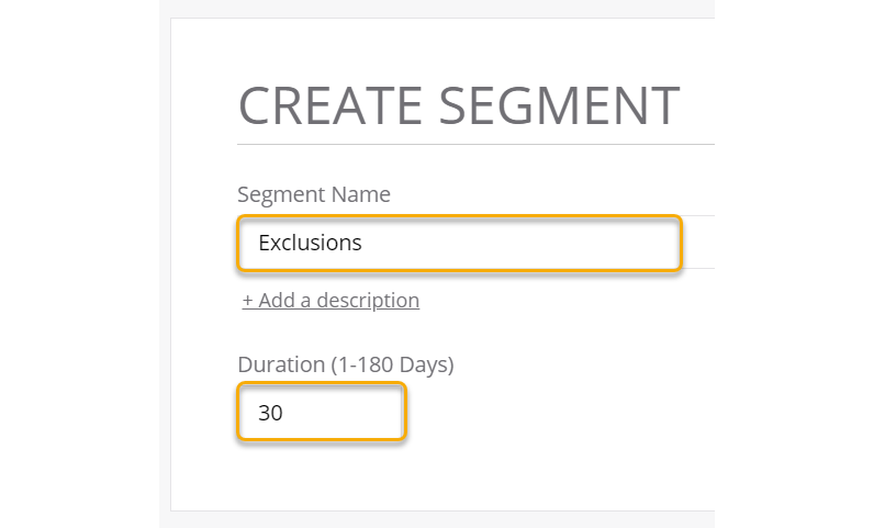 3. Give your segment a name, and set the time frame to whatever you’d like between 1 and 180 days.