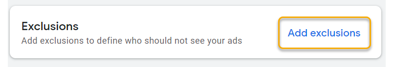13. Down on the bottom of the page in the Exclusions section, click on “Add exclusions”.