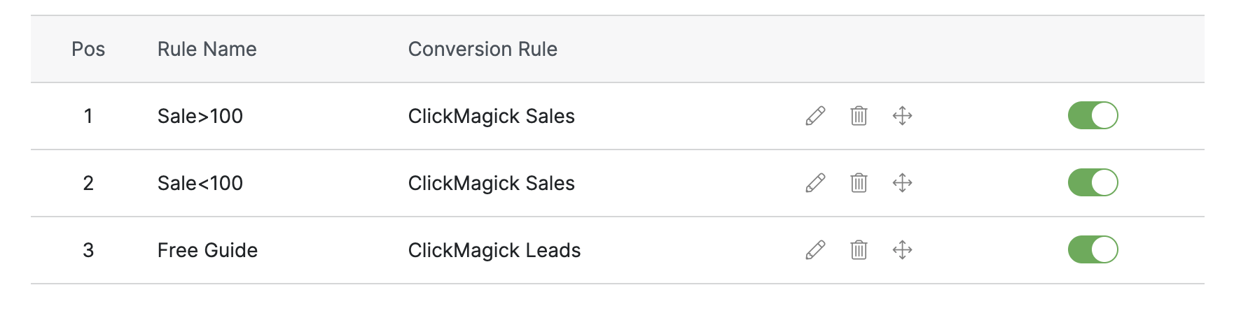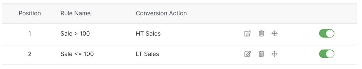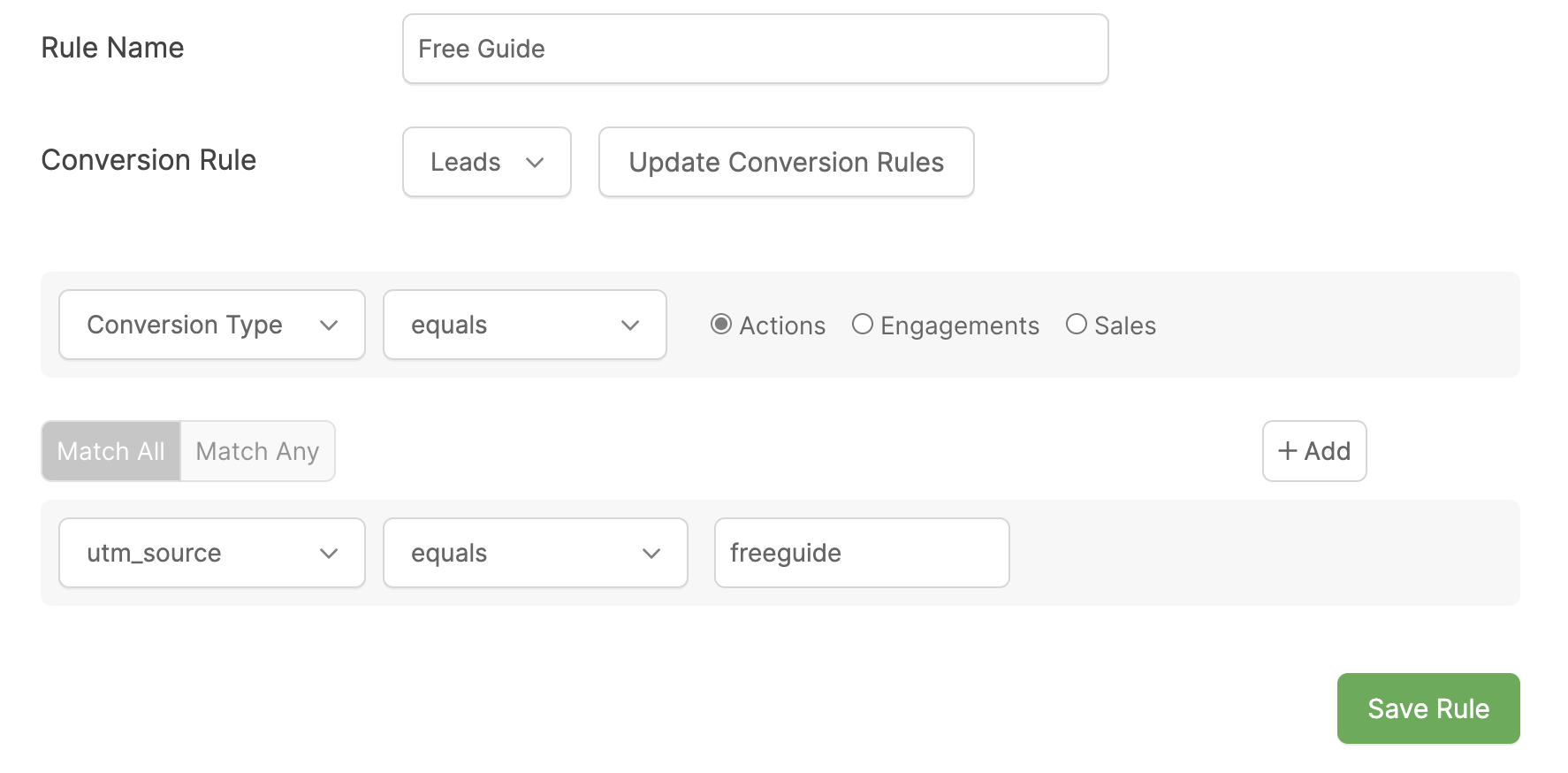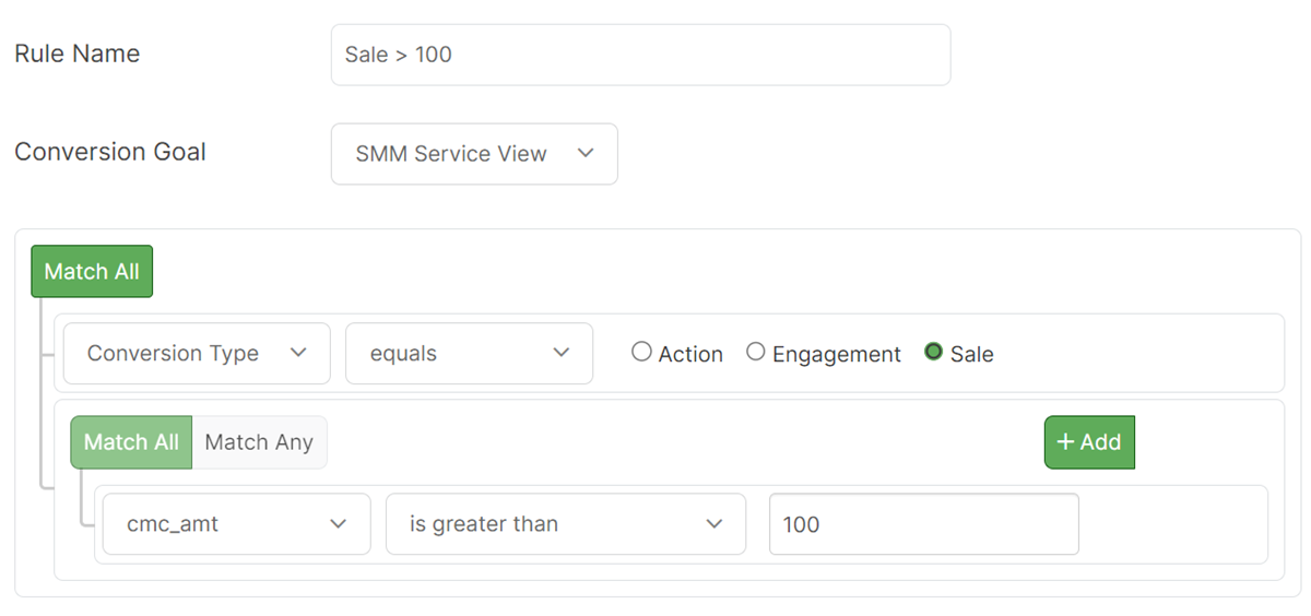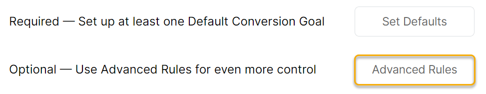 Advanced Rules allow you to set up almost infinitely flexible rules to determine how your conversions are sent back to your ad network based on Conversion Type, UTM Values, and even Sales Amounts.