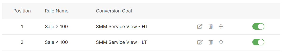 First, you need to create the rules you want to use and the Conversion Goal you want to relate to the rule.