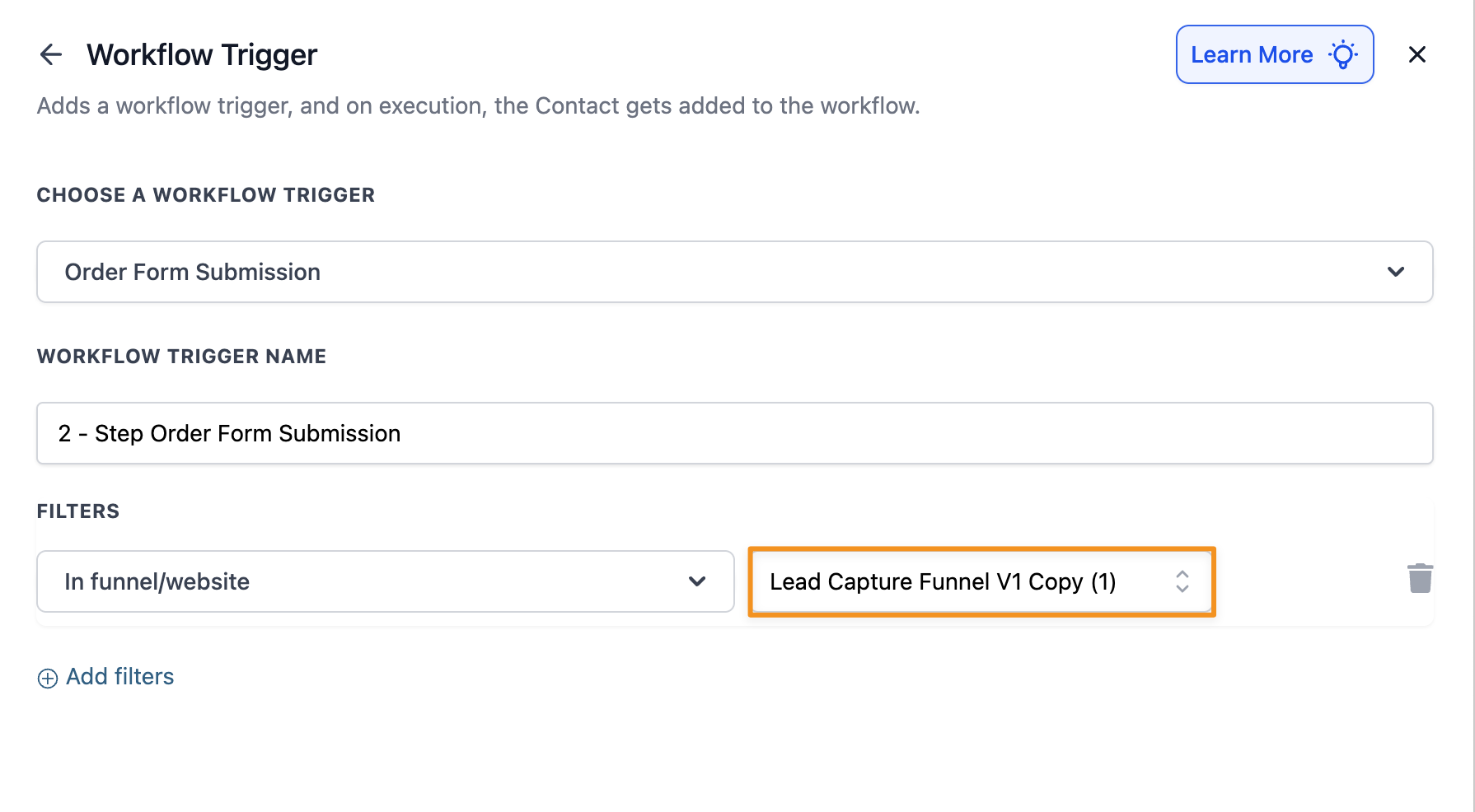 Choose order form submission as the trigger and give the workflow trigger a name.