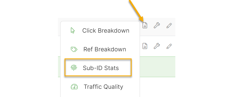 If you need a more granular look at your data based on the first two Sub-IDs. In that case, you can use Smart Links and use the Sub-ID Stats Report (one of the available reports you can get by clicking on the report icon to the right of your Smart Link and selecting “Sub-ID Stats”).